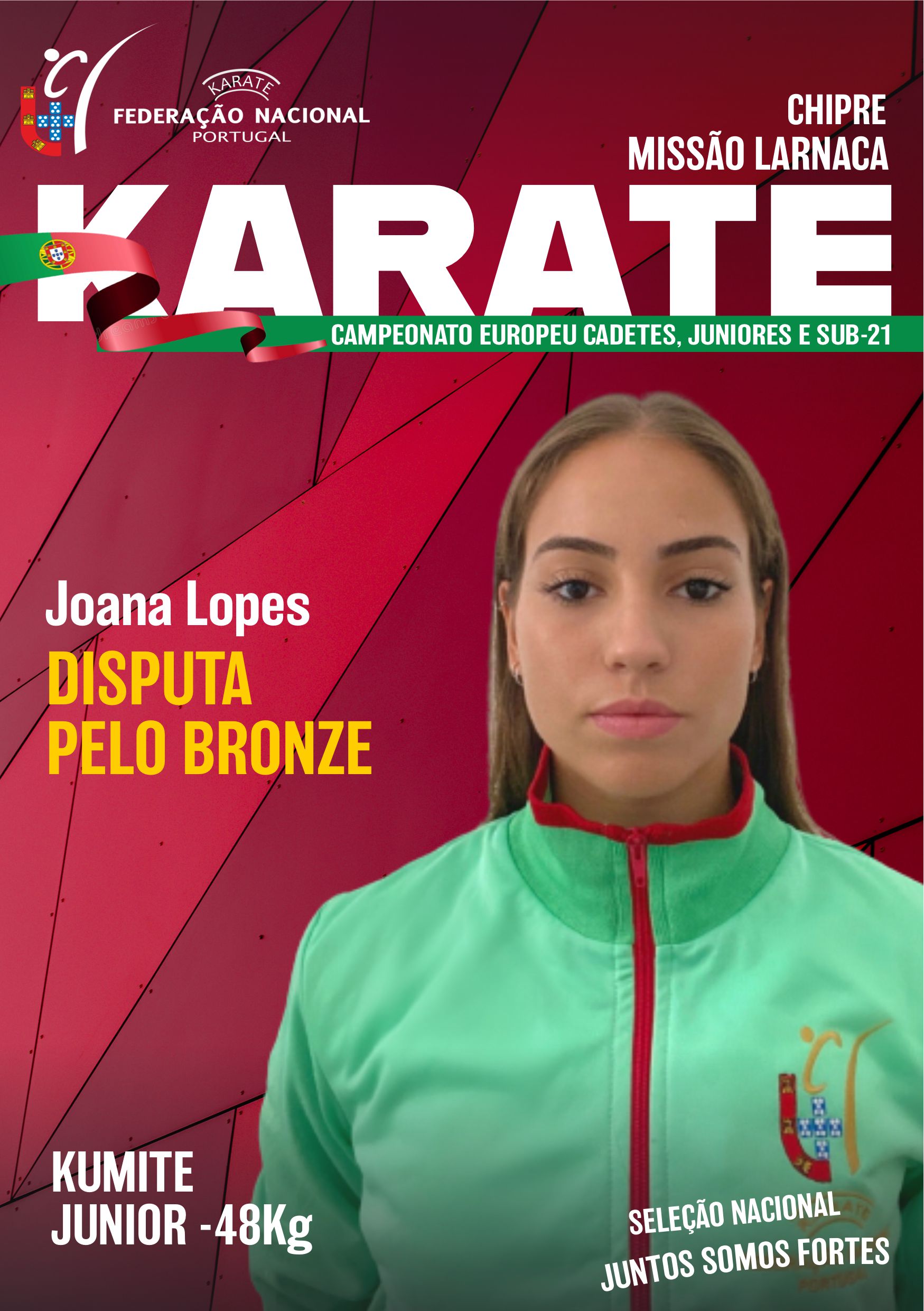 Informamos que a atleta Joana Lopes vai disputar a medalha de bronze no próximo domingo, dia 5, em Kumite Junior -48Kg.